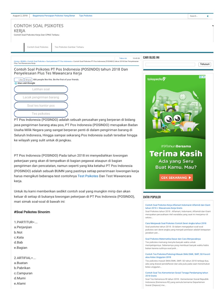Psikotes Restoran : Tes psikotes, are you ready?. Home soal cpns soal psikotes contoh soal psikotes perbandingan/padan kata contoh soal psikotes perbandingan/padan kata contoh soal psikotes perbandingan/padan kata Kalau interview, ada banyak yg perlu mba siapkan. Guna membantu anda untuk mendapatkan contoh soal psikotes umum dan jawabannya, maka pada posting kali ini izinkan saya untuk berbagi sejumlah contoh soal psikotes umum yang tentunya bisa anda gunakan di dalam menambah referensi sekaligus bahan bacaan yang siapa tahu bisa berguna dan bermanfaat untuk anda kedepannya. Tes psikotes, are you ready? Psikotes lanjutan epps (edward personal preference schedule) 17.